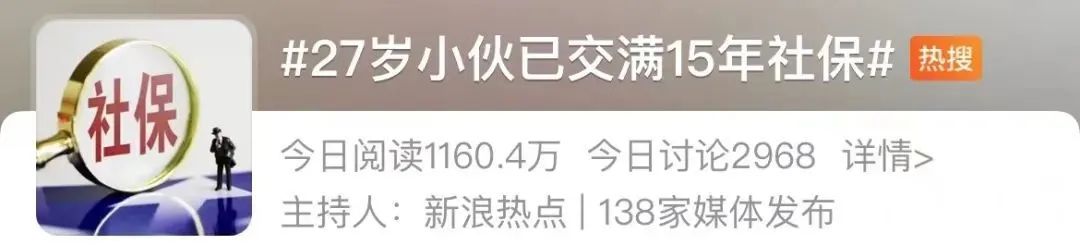 近期,“27岁小伙已交满15年社保”登上热搜,引发关注。