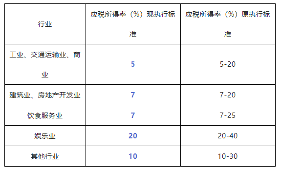 意见稿调整了行业所得税率,统统按原执行最低标准执行,具体如下: